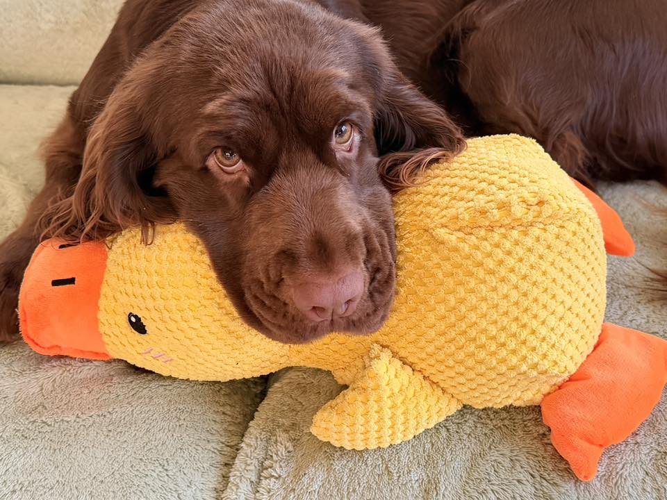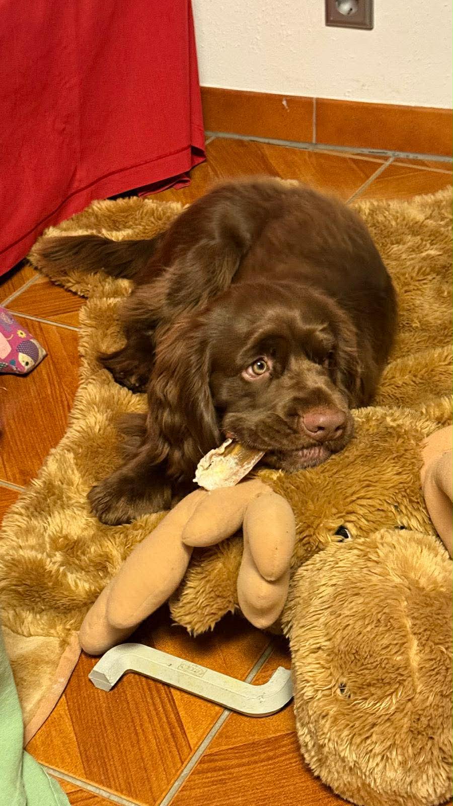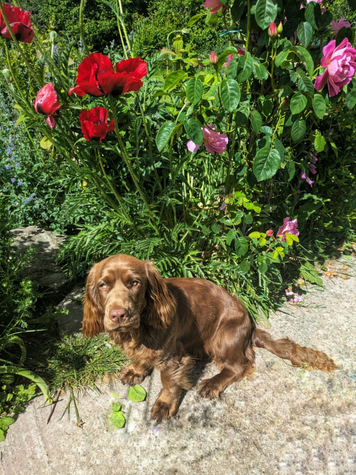 Hon är en liten karaktär, det är helt klart 😀Hon sprider en smittsam energi in i rummet och bär sin långa svans högt, medan hon sveper den fram och tillbaka!Hon älskar verkligen våra långa promenader längs floden varje morgon och hon har förbättrat sitt minne avsevärt de senaste månaderna.Hon är en typiskt viljestark Sussex (som jag älskar 🥰) och otroligt lojal. När jag kommer in i vardagsrummet rusar hon in först, hoppar upp i soffan och fastnar vid mig som kardborreband så fort jag sätter mig ner! Jag älskar hur hon alltid väljer att ligga bredvid mig.